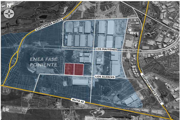Excelente oportunidad de terreno industrial, ubicado en sector consolidado industrial, fácil acceso, acceso inmediato a ruta  68 y la autopista vespucio norte express